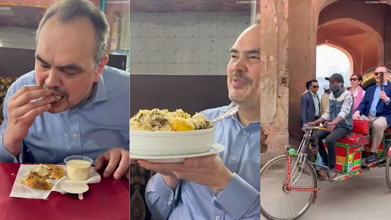 পুরান ঢাকার ব্যস্ত গলিপথ ঘুরে চা-বিরিয়ানি খেলেন মার্কিন রাষ্...
