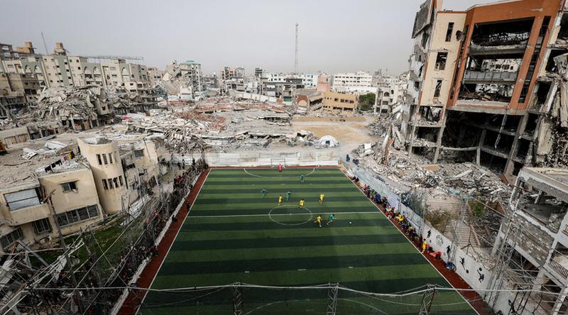 গাজায় ধ্বংসস্তূপের মাঝেই মাঠে গড়াল ফুটবল