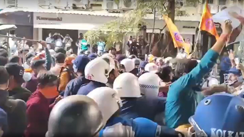 ভারতের পশ্চিমবঙ্গের রাজধানী কলকাতায় বাংলাদেশ ডেপুটি হাইকমিশনের সামনে ফের উত্তেজনা দেখা দিয়েছে। মূলত বাংলাদেশে ‘সংখ্যালঘু নির্যাতনসহ’ বিভিন্ন অভিযোগকে কেন্দ্র করে বিক্ষোভ করেছে ভারতের হিন্দুত্ববাদী সংগঠনগুলো। মঙ্গলবার (২৩ ডিসেম্বর) বিক্ষোভ চলাকালে পুলিশের সঙ্গে ব্যাপক ধস্তাধস্তি ও লাঠিচার্জের ঘটনা ঘটে। এতে আহত হন বেশ কয়েকজন। পরে কয়েকজনকে আটকও করে পুলিশ।