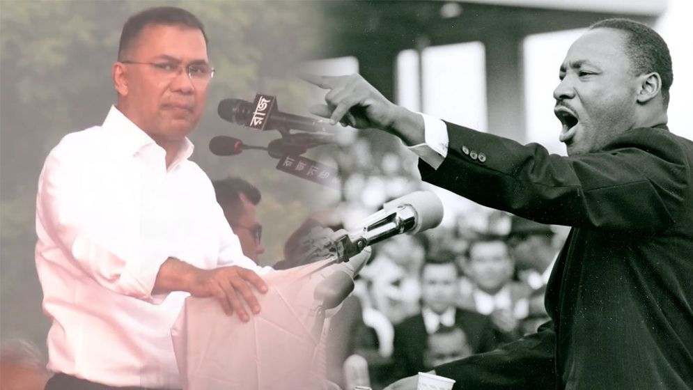 রাজধানীর ৩০০ ফিট এলাকায় আয়োজিত এক বিশাল গণসংবর্ধনা অনুষ্ঠানে বিএনপির ভারপ্রাপ্ত চেয়ারম্যান তারেক রহমান বিশ্ববিখ্যাত কৃষ্ণাঙ্গ নাগরিক অধিকার নেতা মার্টিন লুথার কিং জুনিয়রের ঐতিহাসিক উক্তি ‘আই হ্যাভ আ ড্রিম’-এর প্রসঙ্গ তুলে ধরেছেন।