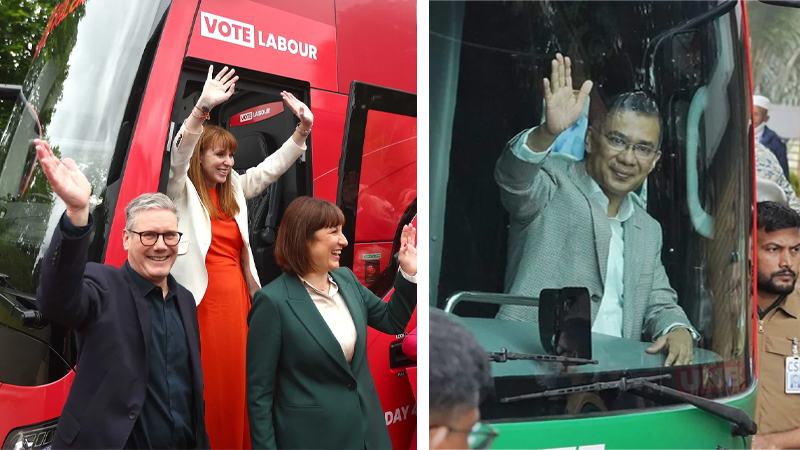 বিশ্ব রাজনীতিতে বাস বহু আগেই কেবল যাতায়াতের বাহন নয়, বরং চলন্ত বা ভ্রাম্যমাণ রাজনৈতিক মঞ্চে পরিণত হয়েছে। ইউরোপেও একই প্রবণতা বেশ জনপ্রিয়। টনি ব্লেয়ার থেকে শুরু করে অ্যাঞ্জেলা মেরকেল পর্যন্ত অনেক নেতাই প্রচারণায় বাসকে ব্যবহার করেছেন ভ্রাম্যমাণ রাজনৈতিক মঞ্চ হিসেবে।