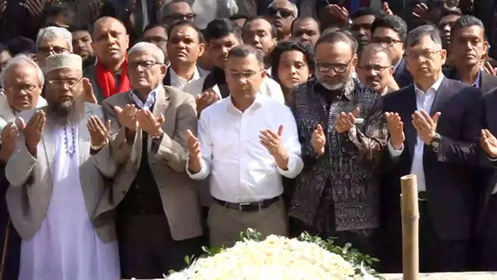 ঢাকা বিশ্ববিদ্যালয় (ঢাবি) কেন্দ্রীয় মসজিদ প্রাঙ্গণে ইনকিলাব মঞ্চের মুখপাত্র শহীদ শরিফ ওসমান হাদির কবর জিয়ারত করেছেন বিএনপির ভারপ্রাপ্ত চেয়ারম্যান তারেক রহমান।