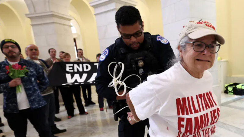 যুদ্ধবিরোধী বিক্ষোভ থেকে প্রাক্তন মার্কিন সেনা ও পরিবারের সদস্যদের গ্রেফতার