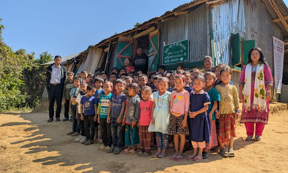 ঝুপড়ি ঘরের এক কক্ষে পাঁচ শ্রেণির পাঠদান