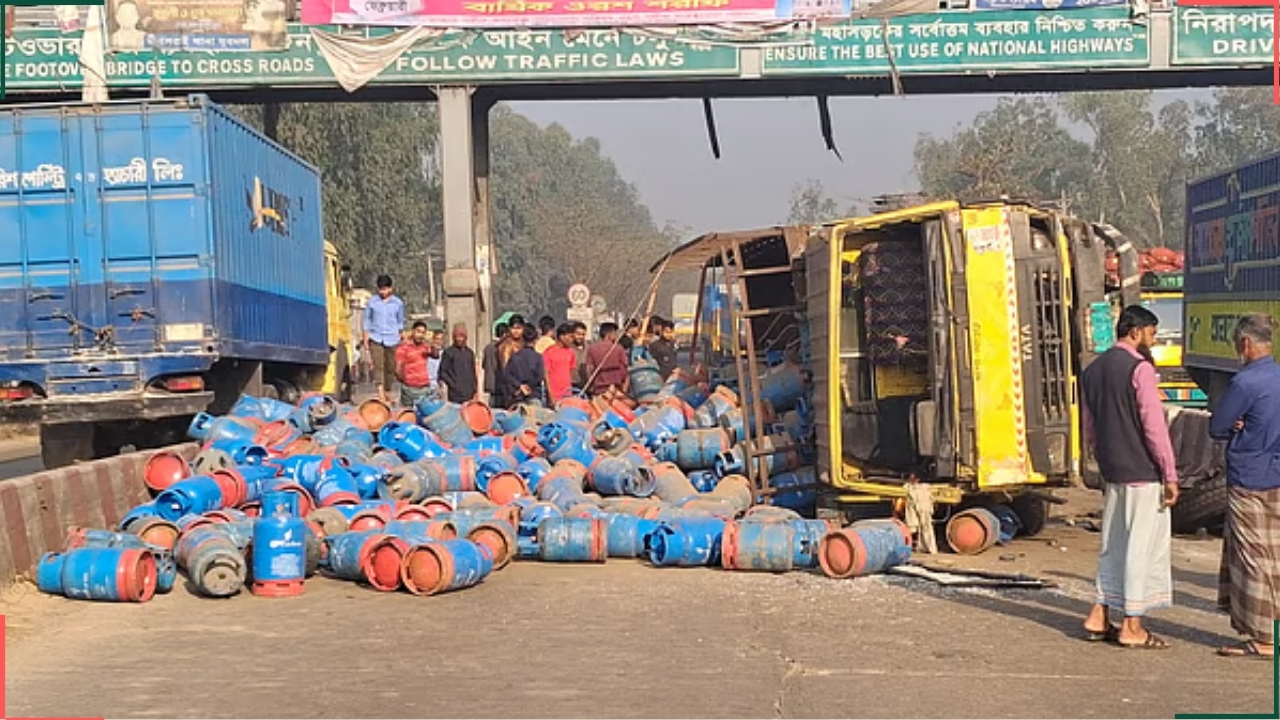 ট্রাক থেকে ছিটকে পড়ল শতাধিক গ্যাস সিলিন্ডার, পথচারী নিহত