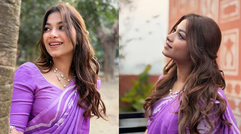 বেগুনি রঙের শাড়িতে নজর কাড়লেন অভিনেত্রী পারসা