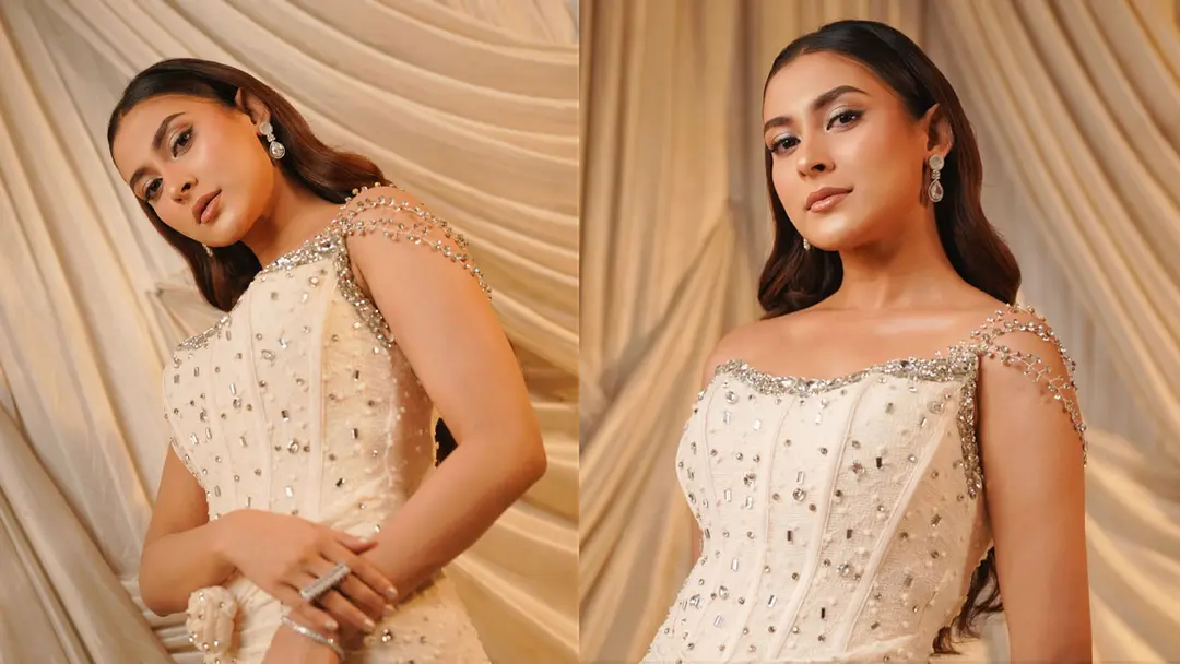 সাদা গাউনে গ্ল্যামারাস মেহজাবীন