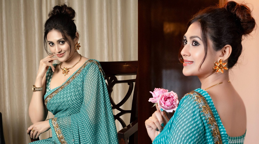 গ্রিন সিকুইন বল গাউনে নজরকাড়া লুকে পরীমণি